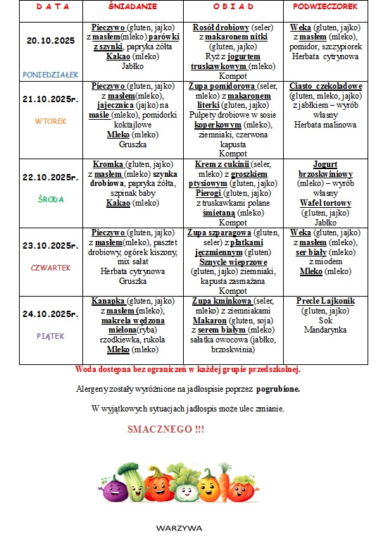 JADŁOSPIS 20.10.2025 -24.10.2025