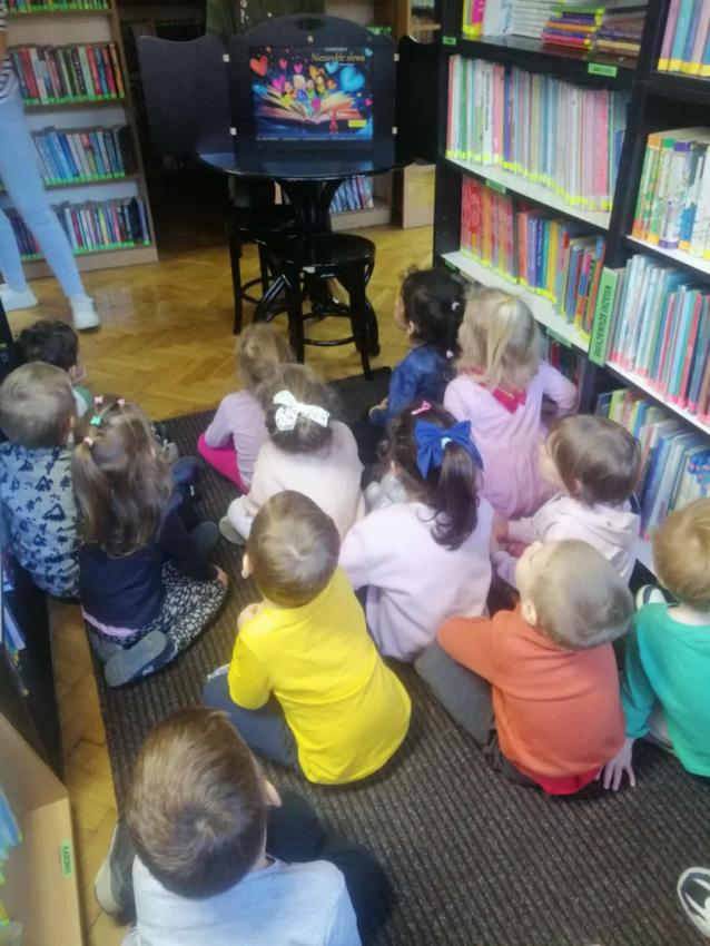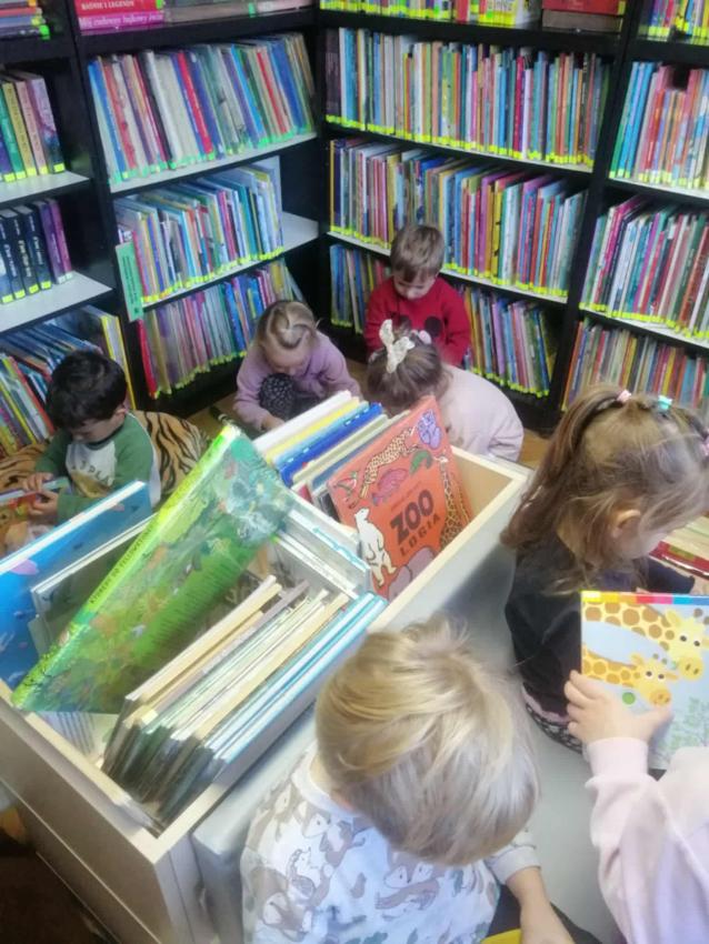Na zakończenie spotkania dzieci zaproszono do odwiedzenia biblioteki wraz z rodzicami. Wizyta była bardzo udana i wzbudziła w dzieciach radość z oglądania książek oraz chęć ponownego odwiedzenia biblioteki.