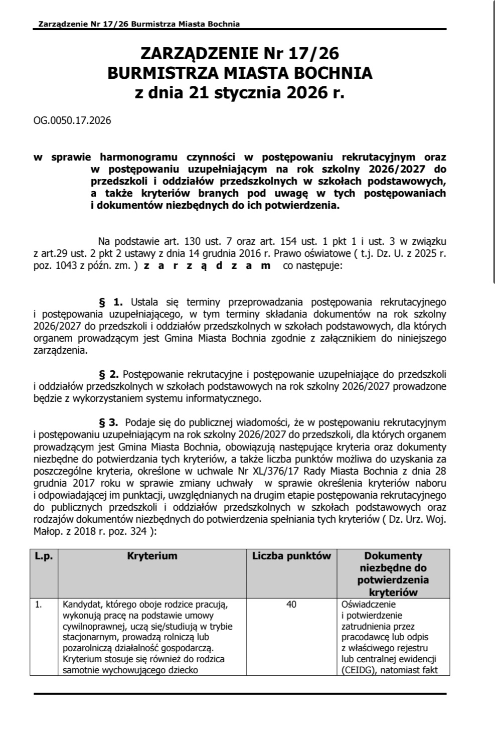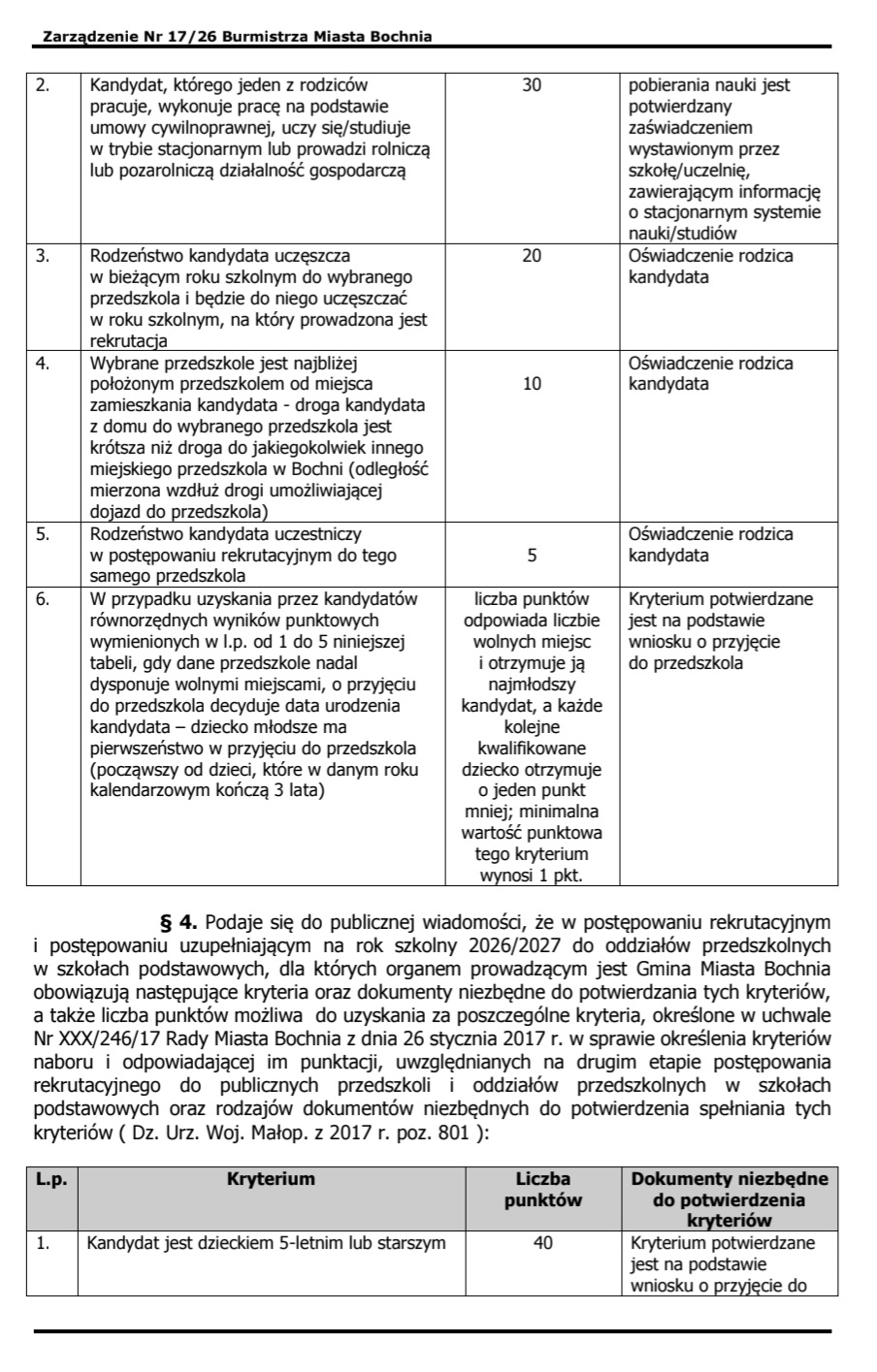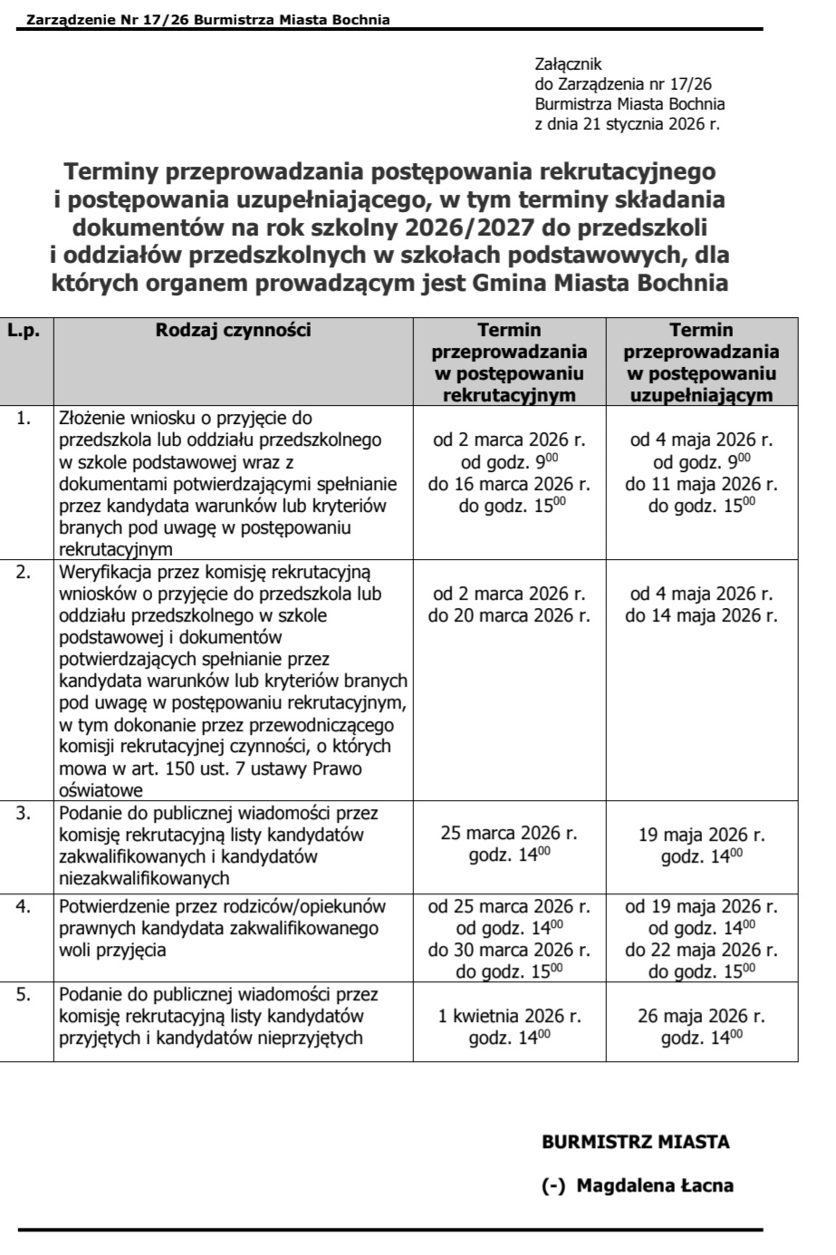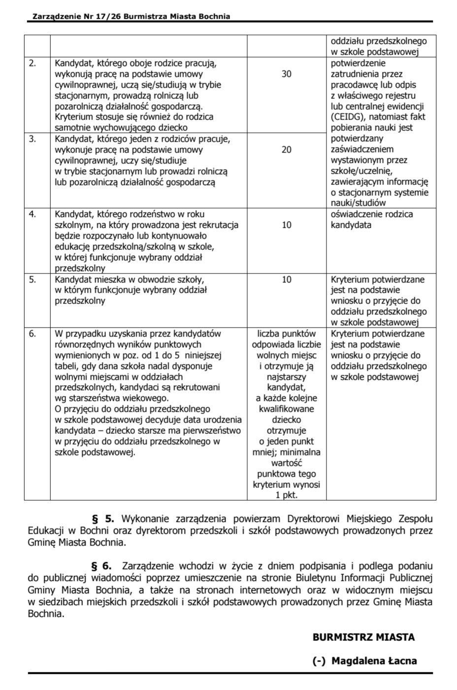 ZARZĄDZENIE BURMISTRZA MIASTA BOCHNIA