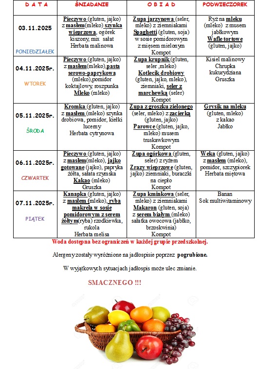 JADŁOSPIS 03.11.2025 - 07.11.2025